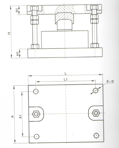 型號 | 量程(kN) | 量程(t) | L | L1 | A | A1 | H | H1 | ? |