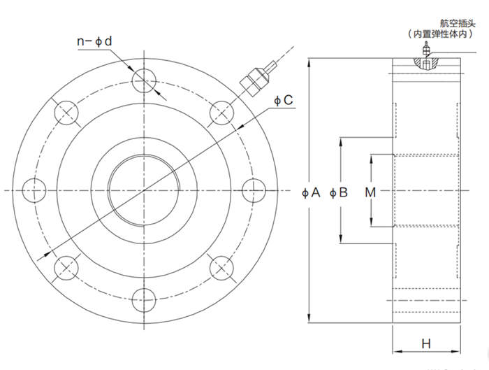 型號(hào) | 量程(kN) | 量程(t) | M | A | B | C | H | n-фd |