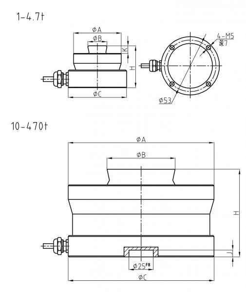 量程: 10kN(1t)、22kN(2.2t)、47kN(4.7t)、100kN(10t)、150kN(15t)、220kN(22t)、330kN(33t)、470kN(47t)、680kN(68t)、1000kN(100t)、1500kN(150t)、2200kN(220t)、3300kN(330t)、4700kN(470t)