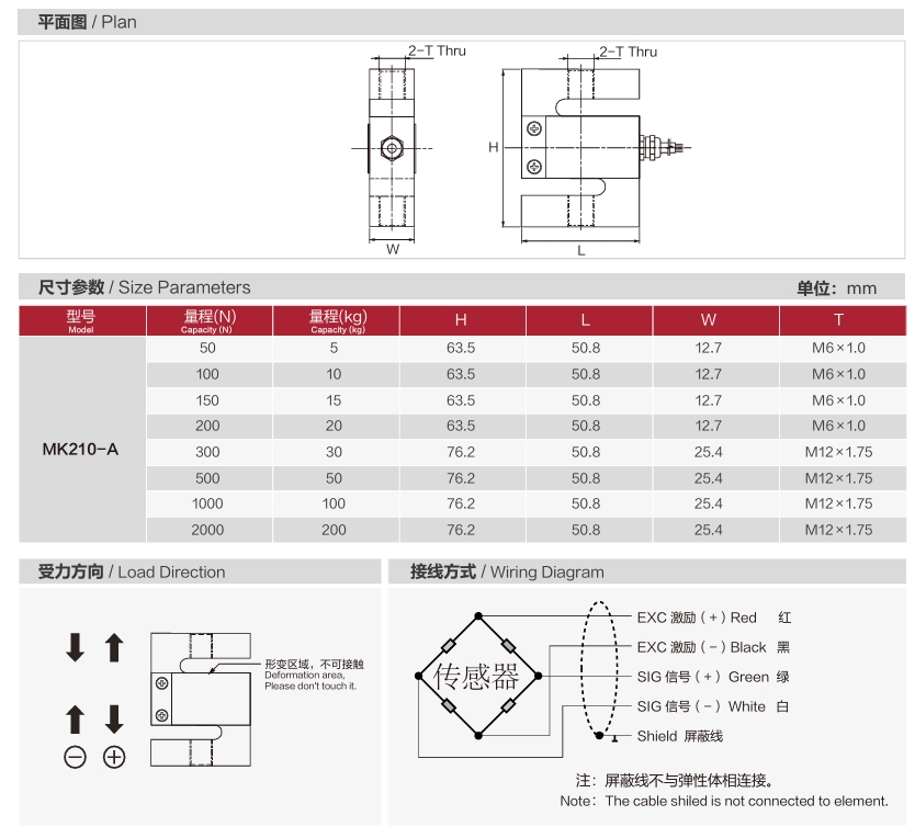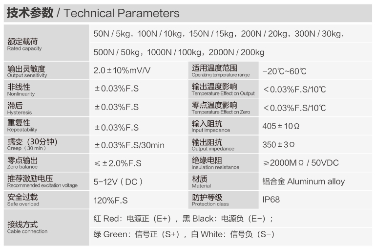 量程:50N,100N,150N,200N,300N,500N,1KN,2KN。