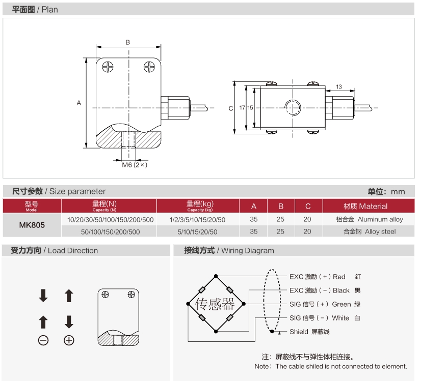 微型傳感器MK805產品型號:MK805品牌:密克斯量程:500N微型稱重傳感器作為一種高精度、小體積的傳感器設備,在現代工業、醫療、智能家居等