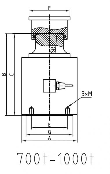 型號 | 量程(kN) | 量程(t) | A | B | C | E | F | G | H | SR | Minch | Mmm | MDP |